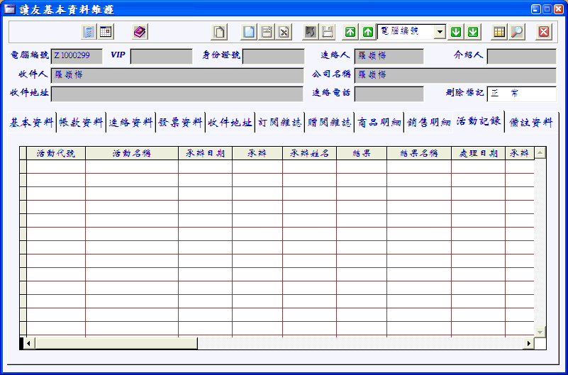 基本資料 連絡資料 發票資料 收件資料 國內地址 國外地址 交易明細 活動記錄