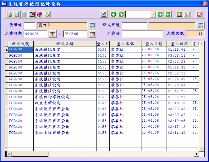 進入本作業時系統自動顯示本日的所有作業進出記錄。 |